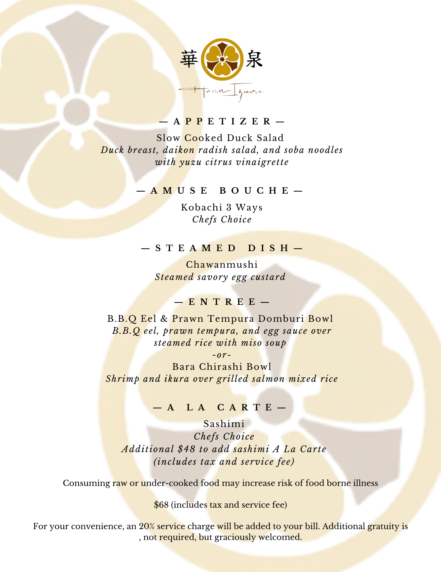 Our Kaiseki seasonal menu changes monthly.